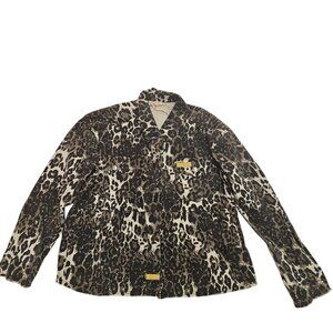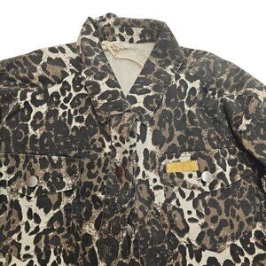 Mystree Leopard Print Denim Front Button Closure Jacket