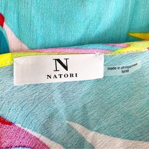 N Natori Bora Bora Tank Dress Aqua Blue Tropical Floral Medium NWT