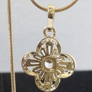 This stunning gold flower pendant necklace adds a touch of elegance to any outfit. The intricate design features sparkling accents, perfect for any occasion.