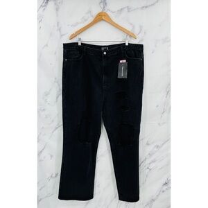 RETTYLITTLETHING Plus Washed Black Ripped Straight Leg Jeans