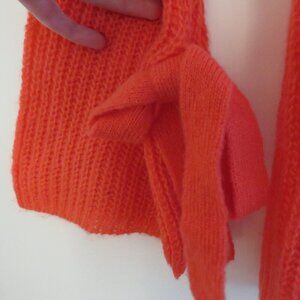 NAADAM Open Knit Bell Sleeve Tied Sweater in Coral Pink Bright - Size S