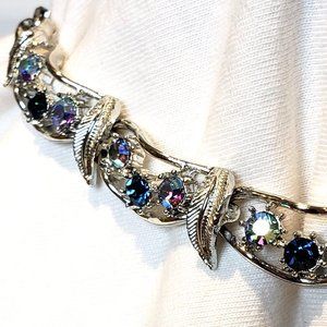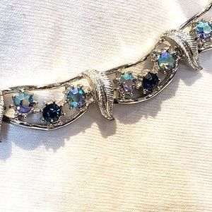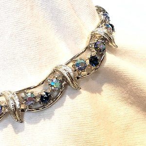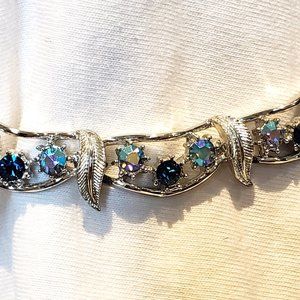 NACKLACE VINTAGE CHOKER STYLE blue iridescent rhinestones