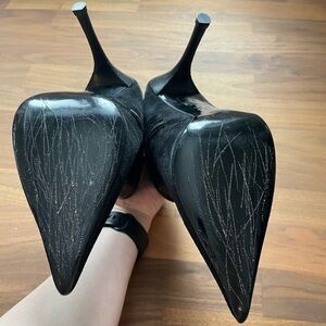 NADIA Neri suede mix fabric pointy toe heels