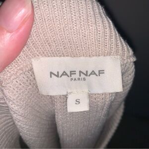 This cream tank top from NAF NAF features a ribbed texture and a stylish tie front, offering a chic and casual look. The sleeveless design and lightweight knit fabric ensure comfort and breathability, making it perfect for warm weather. Its relaxed fit adds to the laid-back style, ideal for everyday wear.