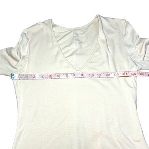In very good pre owned condition. No size tag. Viscose / Spandex blend. TIMELESS JUMPSUIT IS DESIGNED WITH A V-NECKLINE AND LONG FITTED SLEEVES. GRAVITATES TOWARDS YOUR BODY TO MAKE YOU AND YOUR CURVES POP. FROM AIRPORT FLOW TO DINNER NIGHTS, OUR VERSATILE JUMPSUIT IS READY FOR EVERYTHING. Lots of stretch. Photos are important so please check all for condition, detail and measurements.