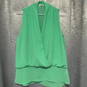 NAKED ZEBRA Seafoam Green / Aqua V Neck Draped Semi Sheer Sleeveless Blouse Sz M