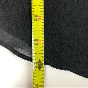 Beautiful feminine top with button keyhole closure at back of neck. Has a small v keyhole opening at front. Light gauzy double layered material which helps give a more flowy look.