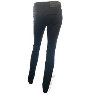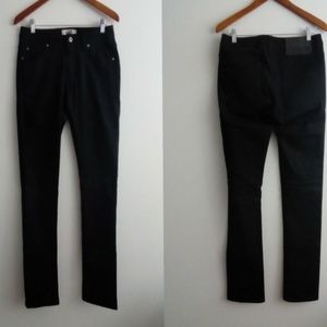 Skinny fit jeans are crafted from clean black stretch-denim, offering a resilient fit that moves easily over the skin while retaining the lean, slender profile.
