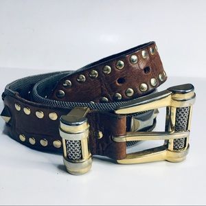 NAMMI Metal Ralls Silver Gold Genuine Italian Leather Belt