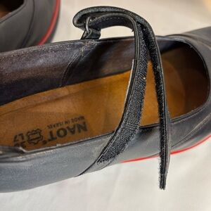 NAOT Sz 7 Wedges Mary Jane Shoes With Red Accent and Trim Hook & Eye Closure