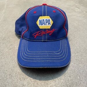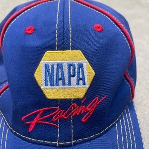 Blue cap with NAPA Racing logo. Features red and yellow accents.