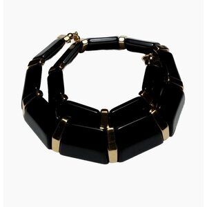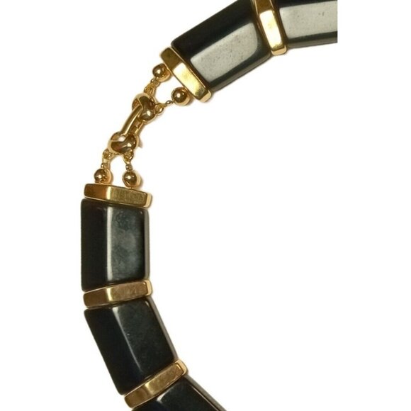 Vintage Signed Napier Choker Necklace Gold-Tone Black Beveled Lucite Beads