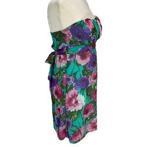 NAPOLI🌺STRAPLESS Blue Floral Lined Dress Mini Size S