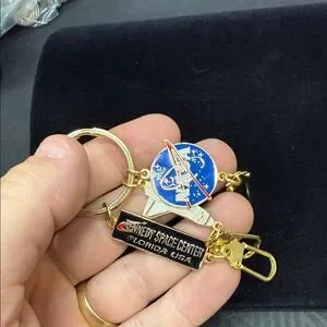 Elevate your accessory collection with this stunning gold space shuttle keychain. Perfect for space enthusiasts.