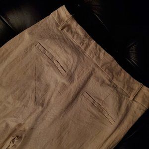 - These pants come in linen and feature a high-waisted, tapered silhouette, zip fly closure, and pockets at sides.