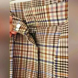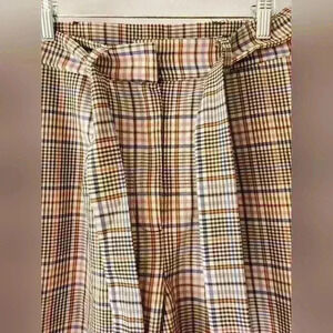 Plaid barrel leg pants with belt. Excellent condition. Made in the UK.