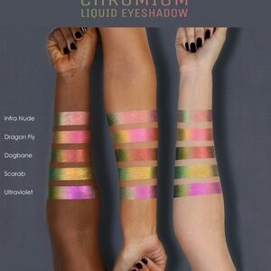 NATASHA DENONA CHROMIUM LIQUID EYESHADOW shade INFRA NUDE - BRAND NEW in the box! A decadent multichrome liquid eyeshadow made with moisturizing avocado oil for a luxe multi-layered look in one swipe. Made with innovative color-shifting pigments, CHROMIUM LIQUID EYESHADOW moves seamlessly between 3 striking shades for a mesmerizing multidimensional look. INFRA NUDE: gold yellow red/pink. This is GORGEOUS on the eyes. I have this one and another one and they dry fast, no creasing or peeling or fading and they last an extremely long time. I have worn it for 12 hours and it still looked as if I had just applied it. For reference I have small and very hooded eyes.
