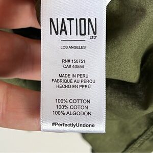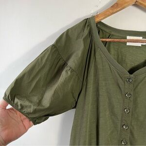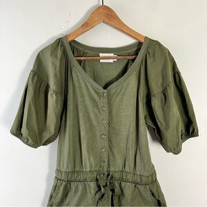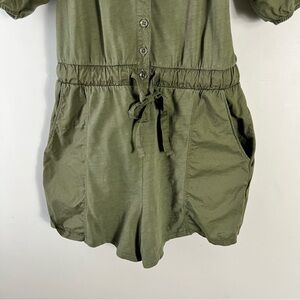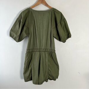 NATION LTD Garner Combo Romper - Ivy Green Size XS Cotton Puff Sleeves Neutral