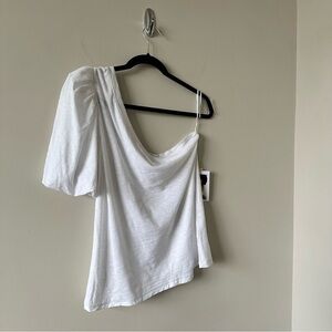 NATION LTD - Raina Balloon Sleeve One Shoulder Tee in White