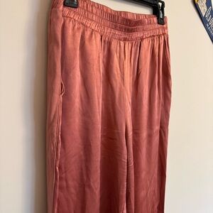 Gorgeous satin dusty rose / salmony colored wide leg pants from Nation. Side stripe with a similar color but different material makes a great but subtle accent.