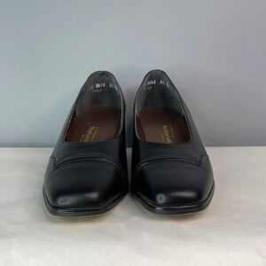NATURALIZER Black Leather Square Toe Block Heel Pumps Parisian Size 8.5 Narrow