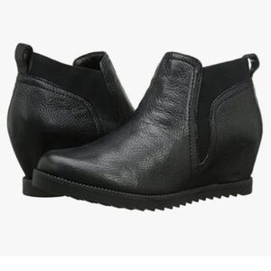 Durable, versatile, and effortlessly chic, these booties are a wardrobe essential. The sleek black leather, combined with their functional wedge, makes them both practical and fashionable.