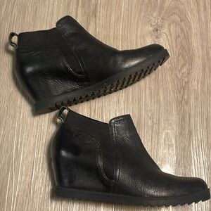 Naturalizer Booties, Black Leather Ankle Boots, Round Toe Wedges, Comfortable Women’s Boots, Slip-On Wedge Booties, Gripped Sole Ankle Boots, Preloved Designer Booties.