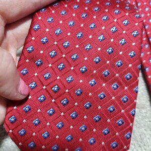 NAUTICA 100% Silk Neck Tie Necktie Geometric Office Red White Blue