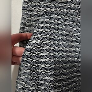 Lovely lightweight cotton fan patterned shorts in a nautical navy and white. Zipper and hook closure. Belt loops.