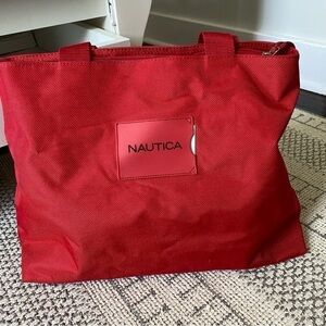 Nautica Catamaran Red Canvas Travel Tote With Outer Zipper Pocket
