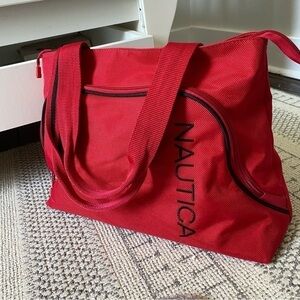 NAUTICA Red Large Canvas Tote Travel Overnight Bag
