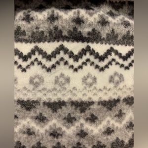 2 pc silky stretch fleece pyjamas in a festive winter design. Long sleeve, V-neck top with matching pants. Pants have an elastic drawstring waistband with a pretty sparkly tie and side pockets.