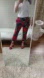 NAVY BLUE EMBOSSED CAPRI TROUSERS POCKETS ZIPPER RED ROSES GREEN LEAVES