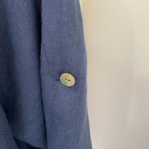 LUNGO L’ARNO NAVY BLUE LONG 100% LINEN ROLL SLEEVE TUNIC/DRESS .
