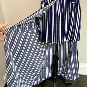NAVY Blue and White Striped Maxi Romper with Cut-Out Sz Large