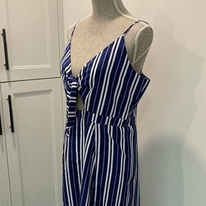 Navy Blue and White Striped Maxi women’s Romper with Cut-Out Size Large