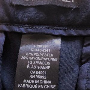 CHIC BUSINESS NAVY DRESS PANTS. FOUR POCKETS, BELT LOOPS, STRAIGHT LEG.