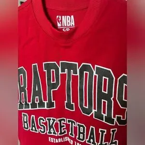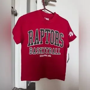 This vibrant red tee showcases the iconic Raptors Basketball logo.