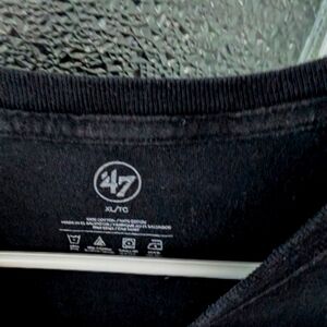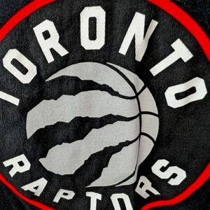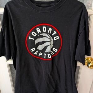 Black t-shirt featuring a Toronto Raptors logo in white and red. Perfect for basketball fans. No cracking on image.
