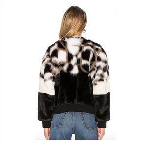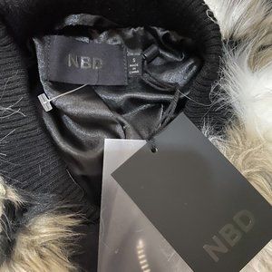 Stylish bomber jacket by NBD. Features bold black and white pattern. Soft and comfortable material. Perfect for casual outings.