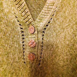 Perfect condition - only worn a couple of times. 55% ramie / 45% cotton Wood faux buttons. V neck pull over.