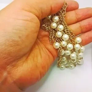 Like new pearl and gold 19" long you could double strand it not sure how real or if real the gold chain is. make an offer.