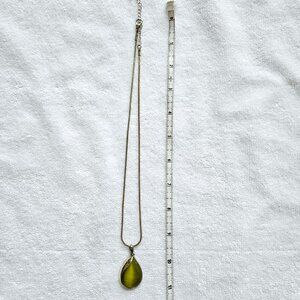NECKLACE - Olive green teardrop medallion on a silver chain