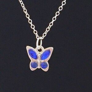 π Pretty silver plate chain pendant/necklace, featuring simulated September birthstone sapphire in a butterfly design