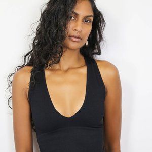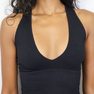 This seamless top is a must have in your wardrobe! Perfect for nights out or date night dinners in. Featuring a deep V-neck line and a seamless look with a ribbed material.