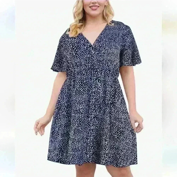 • Style: Dotted print, stretchy empire waistband, short ruffle sleeves, Deep V-Neckline with faux Wrap, Midi, lightweight, snap button closure on chest
