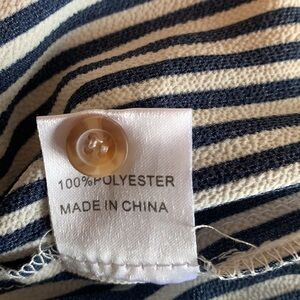 - Gorgeous white/navy blue striped romper. Drawstring Waist with waist tie ,Front Button Detail ,Spaghetti Strap Regular Fitted Sleeveless Rompers