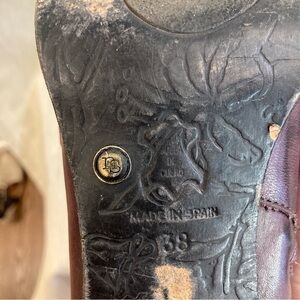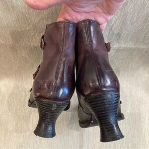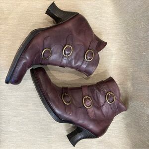 NEOSENS Sz 38 Rococo Steampunk Style Funky Heels Buckles Zipper Side Booties. Lovely burgundy colourway. Pinup. Soft smooth leather. Made in Spanish.