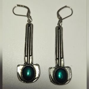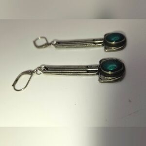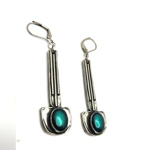 NES Canadian Designer Pewter Metallic Green Enameled Modernist Earrings