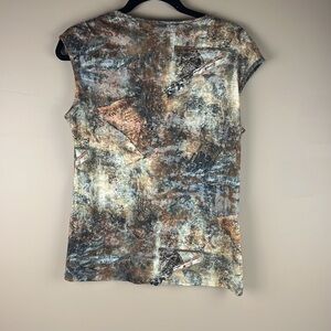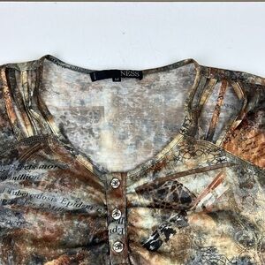 Super cute sleeveless top with fun little open slats along the shoulder. The print is newsprint and music notes. Fun detail, check out the buttons. So cute!